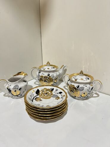 - Yüksək keyfiyyətli porselen, qızılı dekorla.