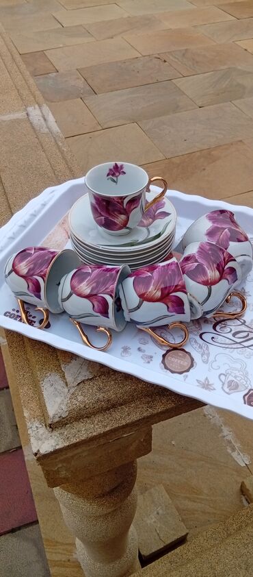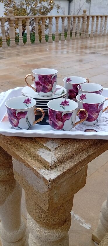 - Xüsusiyyətlər: nazik kənarlı fincanlar, eyni naxışlı fincanaltılar, zərif qızılı konturlar