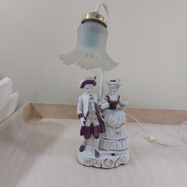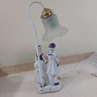 - Dekorativ xüsusiyyətlər: fiqurların üzərində xırda çiçək motivləri, relyefli baza, şüşə abažurun işığı yumşaq yayması.