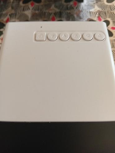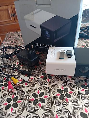 - Kompakt LED proyektor (ağ-qara korpus, üst paneldə idarəetmə düymələri)
