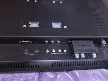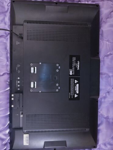 Divar montajlı televizor - Ekran: təxminən 40–50 düym diaqonal, nazik çərçivə - Rəng: qara ön panel, gümüşü/boz alt çərçivə - Quraşdırma: divara asılıb, VESA tipli asqı braketi ilə - Girişlər: arx...