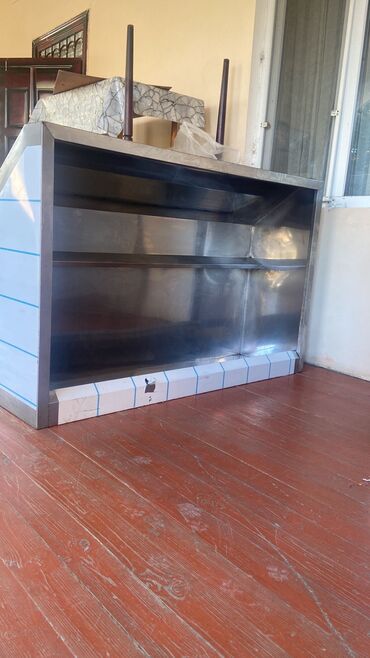 - Paslanmayan polad havalandırma zontu (sənaye tipli, daxili yağ tutucu kanallar və rəflərlə).