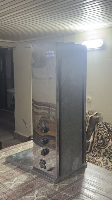 Döner/Kebab şişi üçün peşəkar vertikal qril aparatı - Material: paslanmayan polad gövdə, istiliyədavamlı keramika/brülör paneli - Yanacaq: qazla işləyən (yan tərəfdə qaz girişləri və idarəetmə kla...