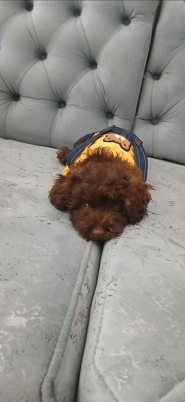 Mini pudel (toy/mini ölçü) – şirin krem-qəhvəyi rəngli, qıvırcıq tüklü Xüsusiyyətlər: - Cins: Poodle (mini/toy ölçülü) - Rəng: krem/qəhvəyi (aprikot tonları) - Yumşaq, hipoallergen qıvırcıq tük qu...