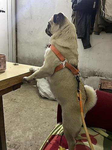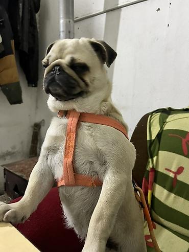 Mops (erkək), 1 yaş barter var - Cins: Mops - Yaş: 1 il - Cinsiyyət: Erkək - Rəng: Bej/krem, qara burun və qulaqlar - Quyruq: Yuxarı qıvrılmış - Xarakteristika: Kompakt bədən quruluşu, ...