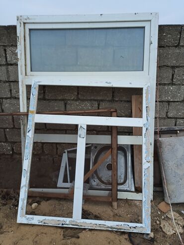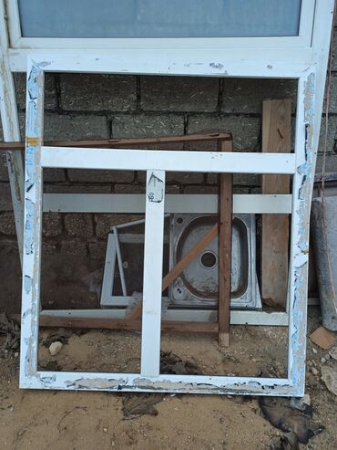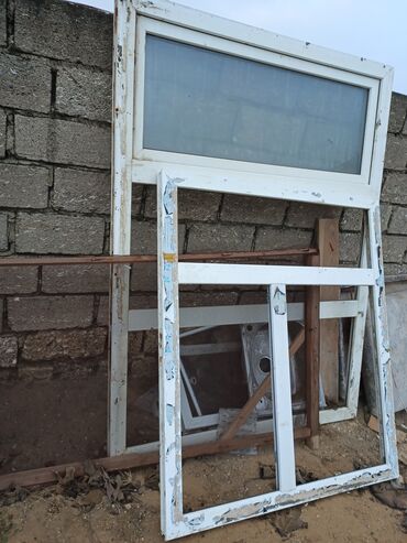 - Aşağı hissə: PVC pəncərə karkasları (çərçivələr) – orta şaquli və üfiqi araqatlarla. Açılan mexanizm hissələri yoxdur.