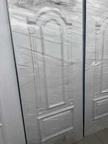 - Daxili istifadə üçün dekorativ panelli ağ qapılar (relyefli dizayn, klassik naxışlar).