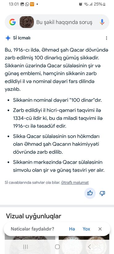Qacar sülaləsi dövrünə aid gümüş sikkə – 100 dinar (hicri 1334 / miladi 1916)
