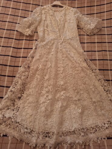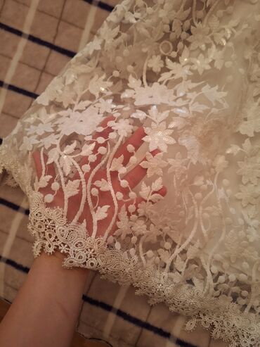 - Parça: Şəffaf tül üzərində sıx floral naxışlı krujeva; parıldayan xırda payetlər ilə işlənib
