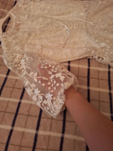 - Qol: Şəffaf tül materialdan, 1/2 uzunluqda, yüngül puff effektli