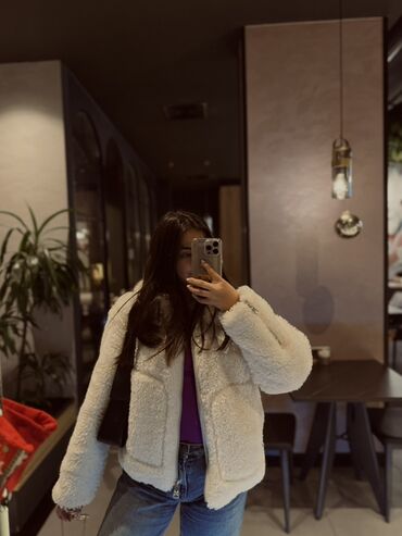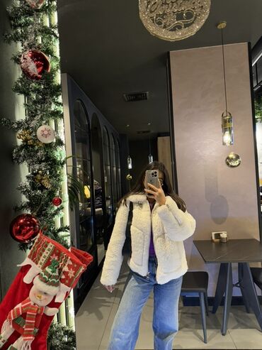 70%139 manata alınıb yarı qiymetine satılır çox rahatdır stradivarius dan alınıb inanmayana şekilinide göstere bilerem, çox az demek olar ki geyinilib, indi ölçüsü böyükdür. Ağ rəngli qadın şerpa/‘teddy’ üslublu qısa şinelik.