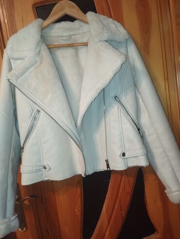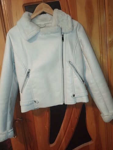 Ağ rəngli qadın qış gödəkçəsi – süni dəri görünüşlü üst və yumşaq, isti süni kürk astar.