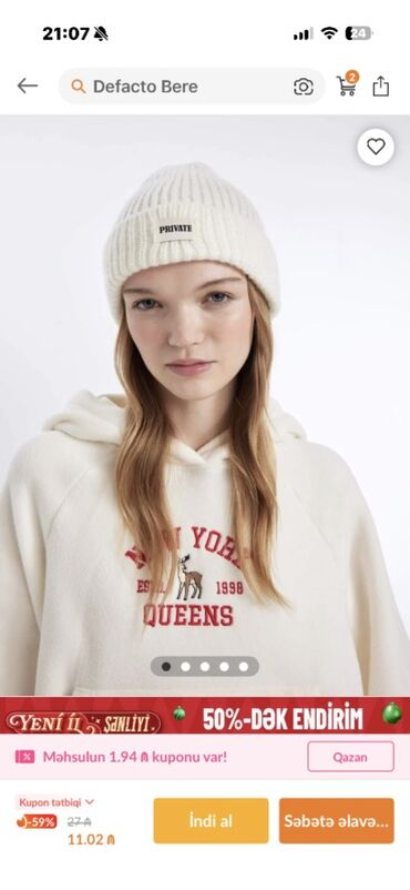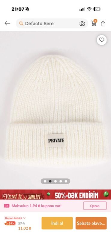 Defacto bere – sadə və zərif dizaynlı, açıq krem/ağ rəngdə toxunma papaq. Klassik çevrilən kənarlı model başa rahat oturur, gündəlik istifadə və soyuq havalar üçün uyğundur. Minimalist görünüşü say...