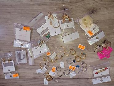 - Çeşid: sırğalar, üzük və broşlar qarışığı
