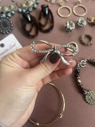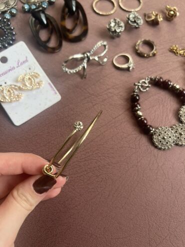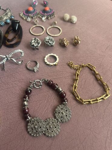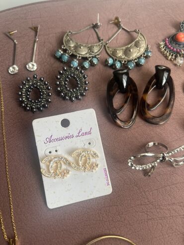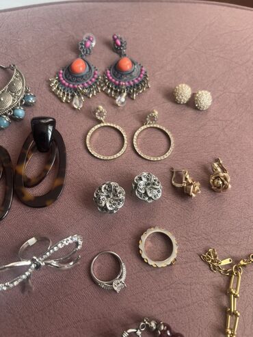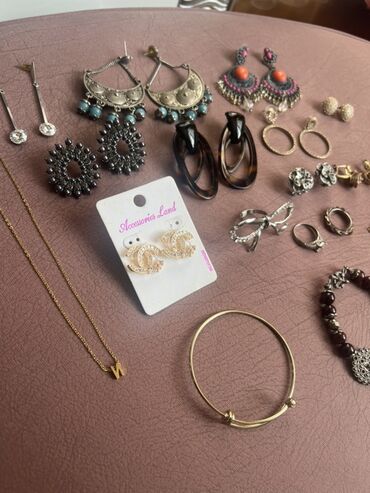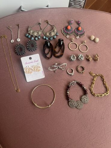 - Bir neçə cüt sırğa: uzun sallantılı daşlı model, etno üslublu gümüş rəngli mavi bonçuklu, rəngli daşlı və püsküllü boho modellər, qara muncuqlu dairəvi, tünd “tortoise” halqalar, xırda qaşlı qızılı halqalar, gümüşü çiçək formalı, qızılı gül formalı, şar tipli kürəcik sırğalar və s.