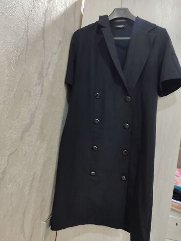 38-40 bədənə uyğundur. 2 dəfə geynilib. Arxası zamokdur. Materialı qalındır. Paltar qısa qaldıqı üçün ayaqların açmışdım ama isdəyən yenidən qatlayıb yığdıra bilər.