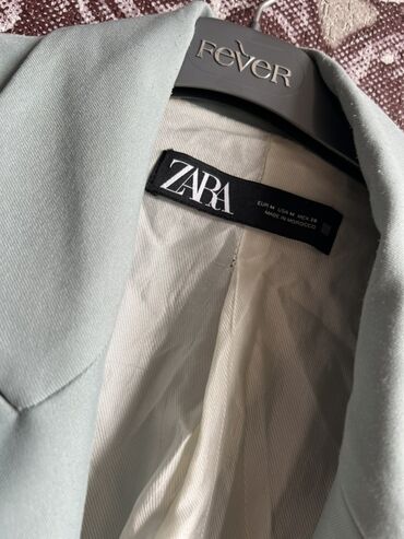 ZARA qadın blezeri – parlaq yaşıl rəngdə, qısa (cropped) model. Klasik haşiyəli yaxa, önü açıq dizayn. Daxili ağ astarlı. Qolları büzməli görünüş üçün qayışlı-düyməli detallarla. Etiketdə ölçü: EUR...