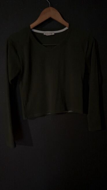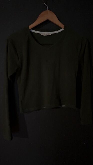 - Tünd yaşıl, uzunqol, trikotaj fakturalı crop top. Yumşaq, elastik parça, dairəvi yaxa. Gündəlik kombinlər üçün ideal.
