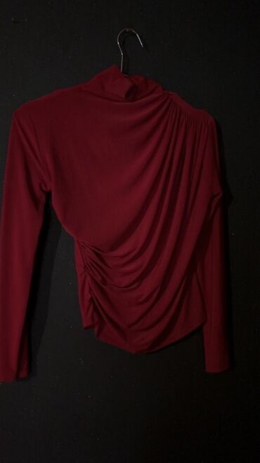 - Tünd qırmızı, uzunqol bluz. Asimmetrik drapeli dizayn, yüngül elastik parça, boğazı qapalı. Axşam çıxışları və xüsusi günlər üçün diqqətçəkən görünüş.