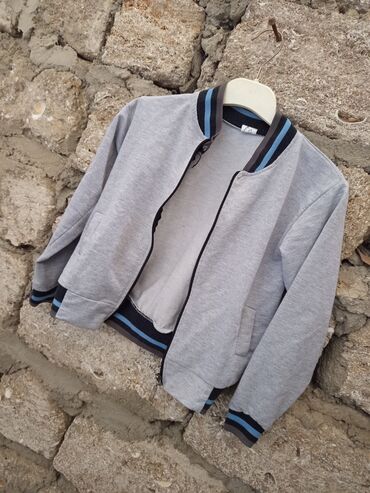 - Boz rəngli yüngül bomber gödəkçə. Ön tərəfdə tam fermuarlı, iki yan ciblidir. Yaxa, qol və ətək hissəsində elastik rezinli haşiyələr var (boz-qaranlıq mavi zolaqlı). Daxili hissə yumşaq parça, gündəlik geyimə uyğundur.