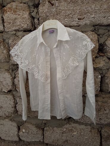 - Ağ düyməli köynək. Böyük dekorativ krujeva şal-yaxa ilə diqqət çəkir; krujevalar ön və çiyin hissəsini örtür. Uzunqollu, klassik yaxalı və ön hissəsi tam düyməlidir. Şənlik, məktəb və rəsmi kombinlər üçün münasib.