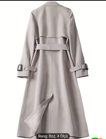 EndirimsizBoz rəngli uzun trençkot