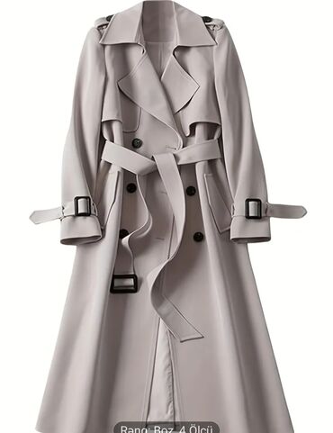 Bej rəngli plaş (L ölçü) - Klassik ikiqat düyməli trençkot üslubu - Uzun model, düz kəsim - Geniş yaxalıq və ön qapaq (storm flap) detalları - İki yan ciblə - Kəmərli (kəmər dəsti var) - Çiyinlərd...