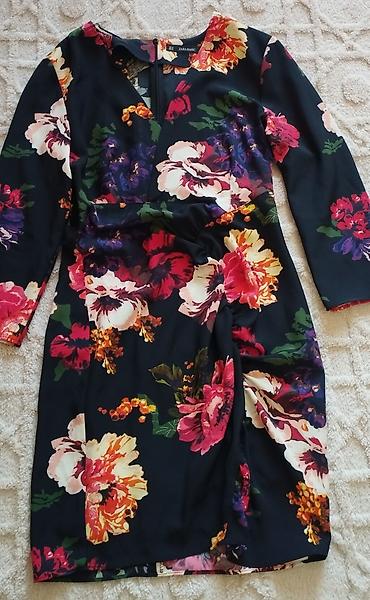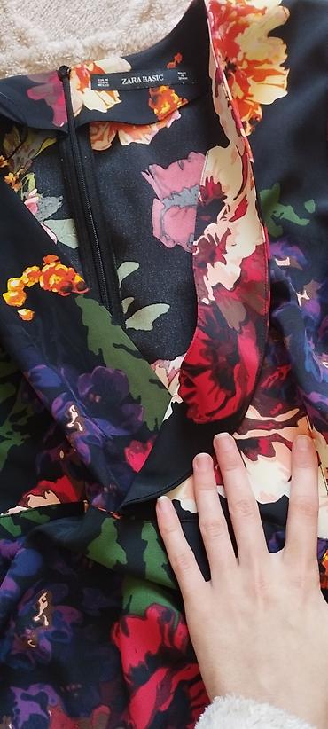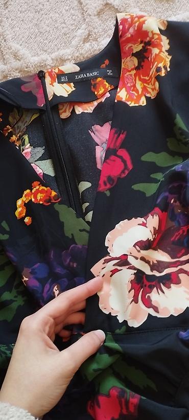 Zara Basic Collection qadın paltarı - Model: çiçək naxışlı mini/orta uzunluqlu don - Rəng: qara fon üzərində bej, açıq-mavi və boz çiçəklər - Ölçü: EUR M / USA M / MEX 28 (etiketdə göstərilib) - İ...