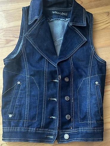 Cins jilet (42 Razmer) - Material: qalın denim (cins) - Rəng: tünd