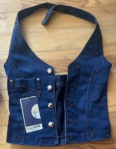 Yenidir s-m razmer Denim qadın jilet - Material: klassik mavi denim (jeans parça), az elastik - Dizayn: V formalı yaxa, ön hissədə 3 ədəd metal düymə - Kəsim: bel qurşağını vurğulayan formalaşdır...