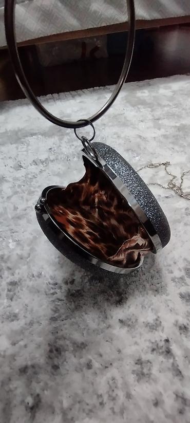 Qutunun formasında möhkəm korpus, parlaq metal detallar və içlikdə heyvani print bu modeli həm zərif, həm də modern göstərir.