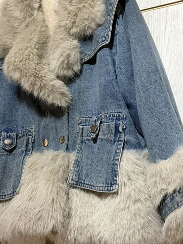 - Material: möhkəm denim parça; yumşaq, həcimli süni kürk yaxa, ön hissə, ətək və qol uclarında