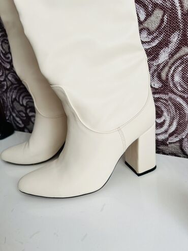 Qadın uzun temiz dəri çəkmə baha alınıb - Rəng: tünd qəhvəyi - Material: yumşaq dəridən, dekorativ iri tikişlər - Dizayn: dizə yaxın hündürlük, yan tərəfdə metal tokalı dekorativ kəmər - Daban: qa...