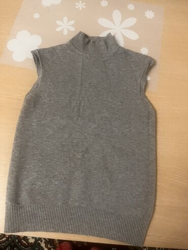 - Boz trikotaj jilet: qolsuz, yarım-balıqçı yaxa, rezinli ətək. Sviterlə uyğun dəst kimi geyinmək mümkündür.