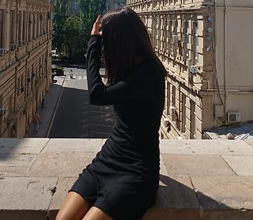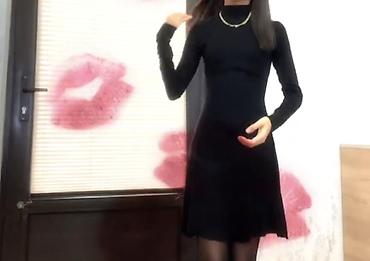 - Qara trikotaj paltar – uzunqol, boğazlı (yüksək yaxalı), bədənə oturan üst hissə və dizə yaxın ətək kəsimi. Minimalist dizayn, soyuq havalar üçün rahat elastik parça.