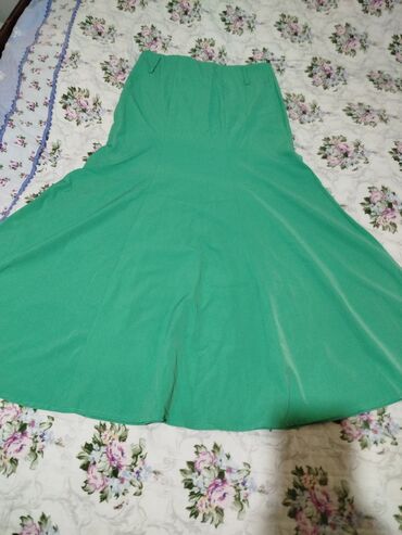 - Yaşıl ətək: Yuxarıdan bədənə oturan, aşağıya doğru genişlənən kloş kəsim, hamar parça, bel hissəsində ilgəklər.