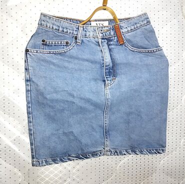 Qadın geyim dəsti – 4 məhsul Hamsi S razmeridir Hamsi bir yerde 10 man.Ayriliqda biri 3 man . 1) Cins ətək - Açıq mavi denim - 5 ciblə (ön iki, arxa iki, sikkə cibi) - Fermuarlı və düyməli bağlanma...