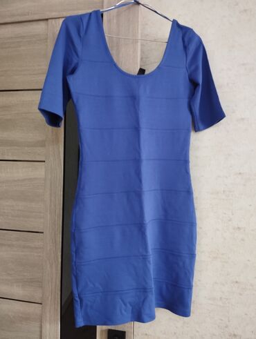 H&M qadın paltarı - Rəng: parlaq firuzəyi/mavi - Model: sadə, düz kəsim; yuxarı hissədə geniş kəmərvari yaxalıq və ön tərəfdə nazik dekolte kəsiyi - Üst hissə tikişlə ayrılmış, bel xəttindən aşağı...
