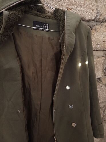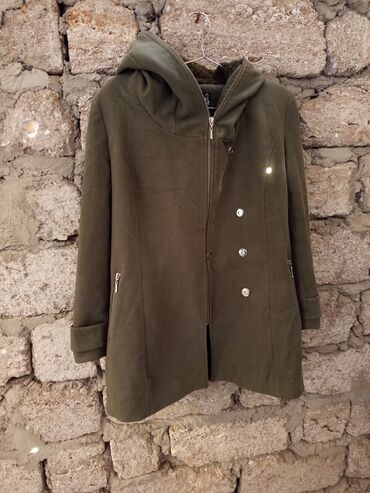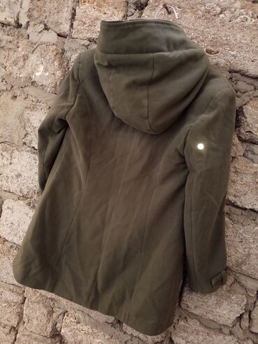 Qadın kapşonlu palto – zeytun-yaşıl rəng