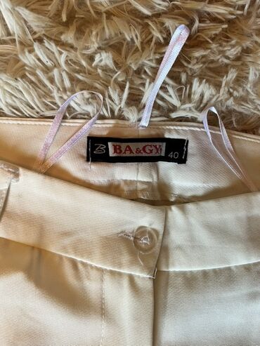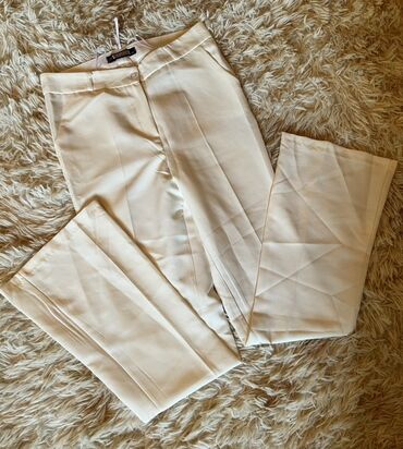 Ensiz biçimli, yüksək belli, açıq rəngli şalvar. Ölçüsü 42/XL-dir. Yan