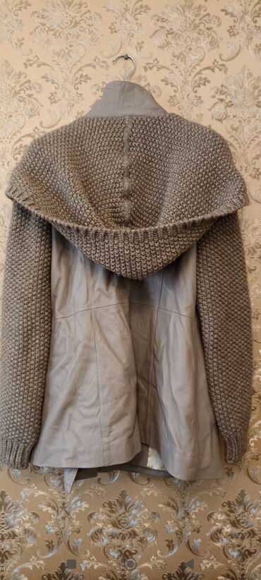 - Material: əsas hissə yumşaq dəriyə bənzər material, qollar və yuxarı hissə iri toxunuşlu trikotaj
