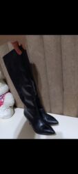 Qadın üçün uzun çəkmə - Rəng: qara - Material: hamar, dəriyə bənzər