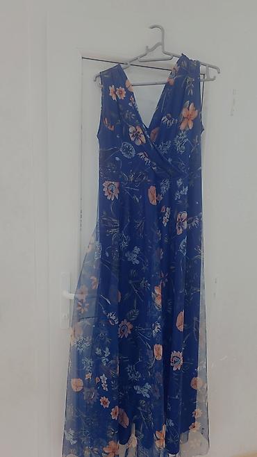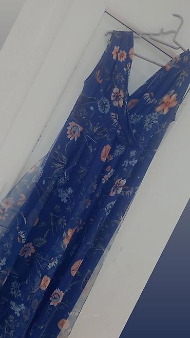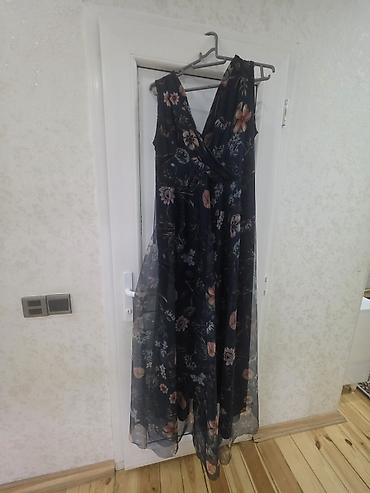 2) Kobalt göy, çiçək naxışlı şifon maxi don