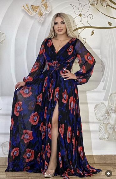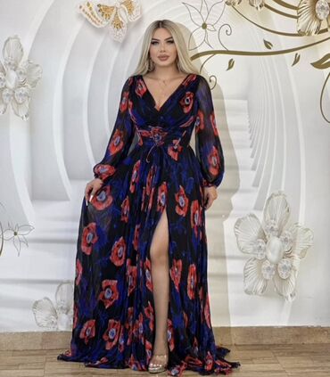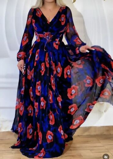 Qadın paltarı – maxi uzunluqda, çiçək naxışlı şifon