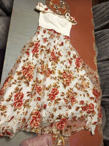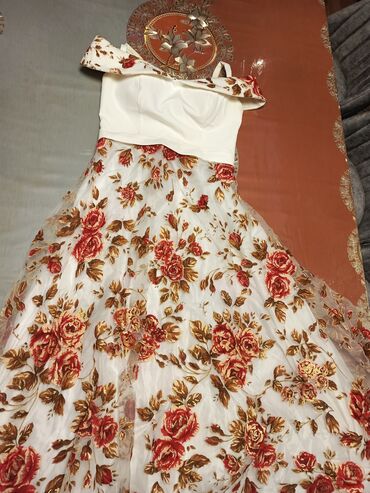 - Rəng: ağ üst hissə, ətək hissədə qızılı və qırmızı güllü naxışlar