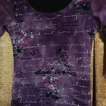1) Bənövşəyi rəngli, üzəri yazılar və çiçək naxışları ilə printli model
