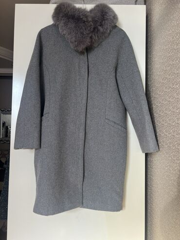 Boz rəngdə, kürklü yaxalı zərif qadın paltosu. Bu palto rahatlıq və istilik təmin etmək üçün nəzərdə tutulmuşdur. Uzun qolları və tikişli astarlı daxili hissəsi var. Paltonun ön hissəsində iki əl c...