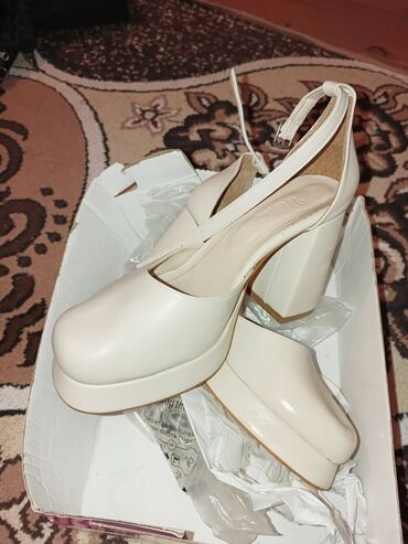 Bej rəngli qadın platforma ayaqqabısı - Model: Mary Jane üslubunda, kəsişən iki kəmərli - Bağlanma: Tənzimlənən metal tokalar (iki ədəd) - Material: Yumşaq teksturalı üst hissə, toxuma görünüşlü; ...