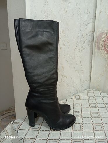 Qadın çəkməsi – qara rəngdə, dizaltı model Temiz deri qadin