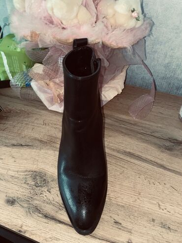 Qadın üçün qara dəri bot - Model: Qısa qol­lu, yan tərəfdən fermuarlı